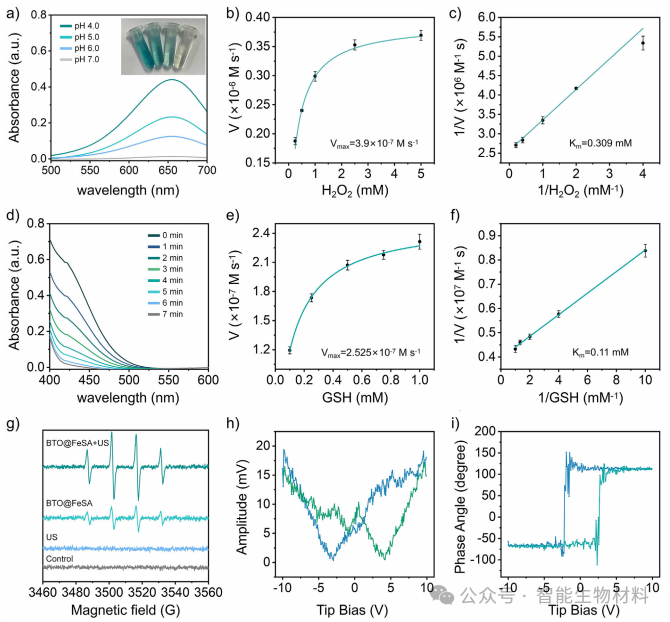 压电效应增强:利用超声驱动的压电材料(钛酸钡,BTO)产生动态电场,显著增强单原子铁位点的过氧化氢酶(POD)活性,提高ROS生成效率。
