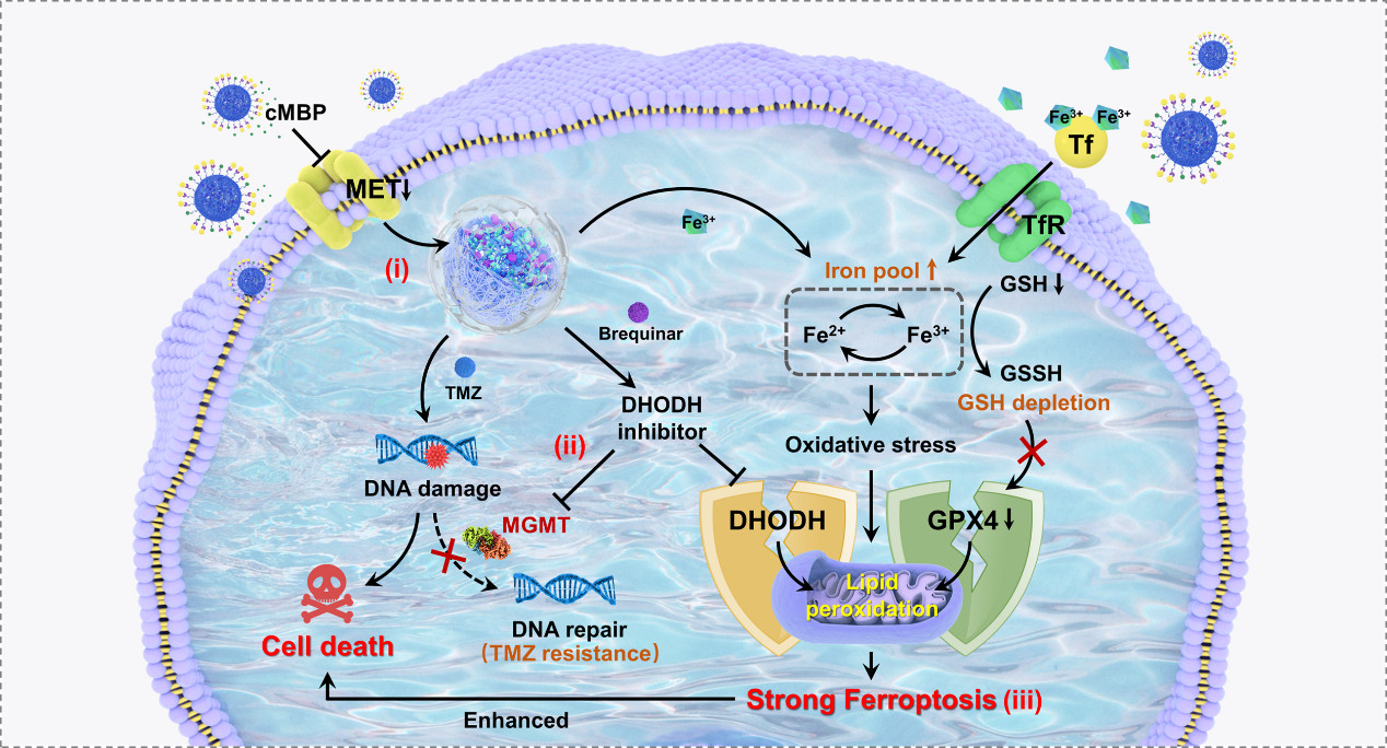 2026-02-10摘要:2025年6月9日,长春应化所张洪杰院士团队其报道了一种封装有TMZ、FeⅢ、DHODH抑制剂并修饰T10和cMBP肽的金属-酚醛网络纳米增敏剂(TBFP-MT MPNs),通过靶向耐药细胞并抑制MGMT表达,...