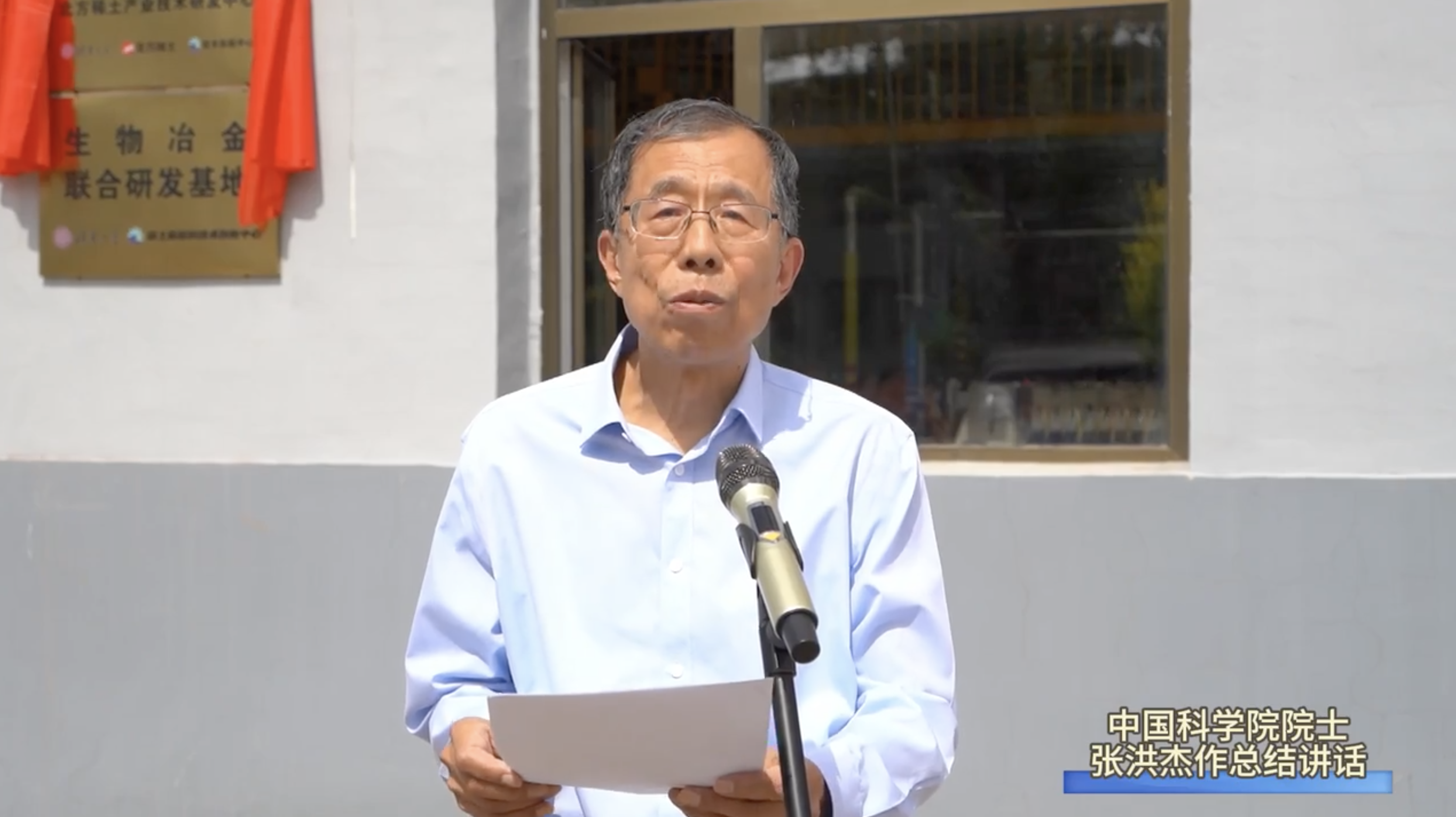 中国科学院院士、清华大学化学系教授张洪杰出席仪式并指出,生物冶金技术实现了稀土绿色分离新突破,达到国际领先水平。