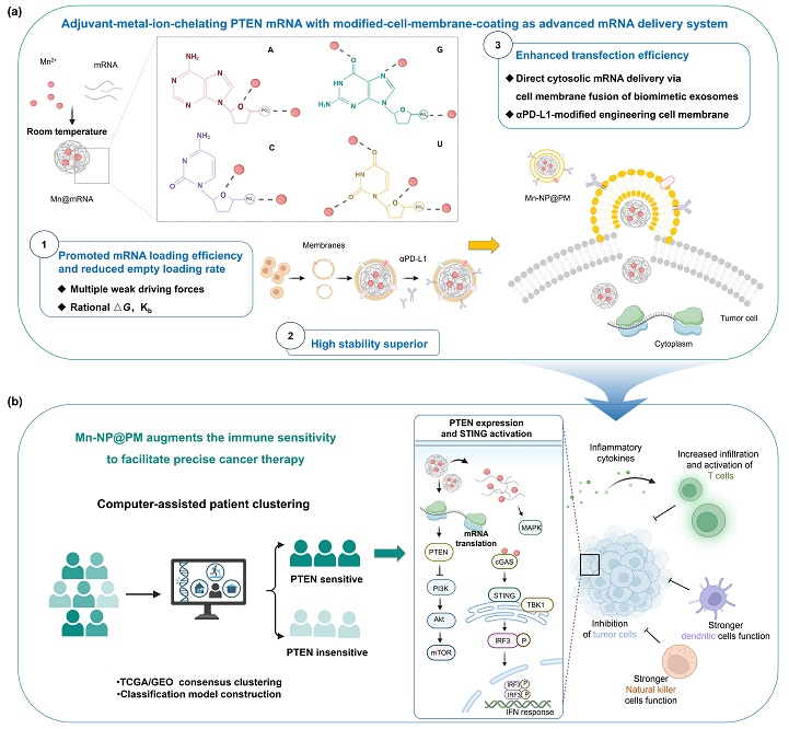 金属离子螯合PTEN mRNA仿生递送系统用于精准癌症免疫治疗