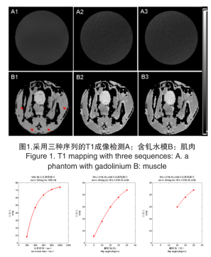 图1 采用三种序列进行水模及肌肉组织T1值静态测量验证