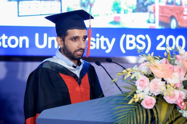 毕业生代表KAMRAN AMIN发言