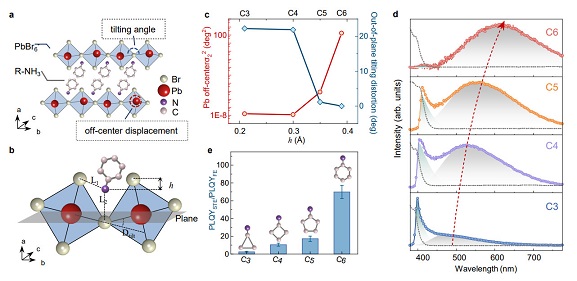图1 | 二维卤化物钙钛矿中环状有机阳离子依赖的自陷激子发光